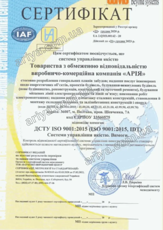 Система управління якістю відповідає вимогам ДСТУ ISO 9001: 2015